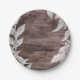 Weiß & silber Blätter & Rustikales Holz Elegant Pappteller
