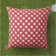 Kissen im Freienim hellen Rot mit Losen weißen Sternen.