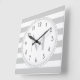 Weiß-Streifen-Muster-Monogramm lt-Gray | Quadratische Wanduhr