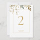 Schick und elegant. Diese wunderschöne weiße Hochzeitsfeier-Tischnummer mit Aquarellfarben-Details und imitativen Goldakzenten. Das Design umfasst einen zeitgenössischen Schriftart in der Imitation von Set aus Gold in einem dünnen goldenen Taupe Rahmen. Das Design wird hinten wiederholt.