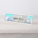 Weiche, hübsche Umgebung in Weiß- und Aquatönen mit weißen und blauen Hydrangeas. Fügen Sie Ihren Namen hinzu, um diese stilvolle Schreibtischmarke zu personalisieren.