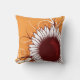 Dieses Ausrüstungsbeschreibungen eine große weiße Sonnenblume mit einer Burgunder-Mitte auf einem orange Hintergrund.