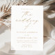 Minimalistische, moderne Hochzeitseinladung mit Ihren Hochzeitsdetails in einfacher Goldschrift mit der "Hochzeit von" in einer eleganten Kalligraphie-Schrift. Der solide weiße Hintergrund kann in eine Farbe Ihrer Wahl geändert werden. Entworfen, um mit unserer Hochzeitskollektion "Moderne Elegance" zu koordinieren.
