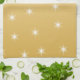 Goldsternchen-Vereinbarung. Ein Muster von Weiß spielt auf einem nicht-metallischen Goldfarbhintergrund die Hauptrolle. Die sechs-spitzen weißen Sterne sind auf einem Hintergrund, der von einer mittleren Goldfarbe zu einem helleren Gold mischt.