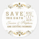 Elegante goldblühende Spitzen-Wirbel auf einem weißen und abwechslungsreichen Hintergrund. Individuell anpassbare Save the Date, Hochzeitsaufkleber Vorlage. Wenn Sie Hilfe bei der Anpassung eines meiner Designs benötigen, kontaktieren Sie ArtOnWear Designer. Kostenlose Textformatierung mit Live-Hilfe auf Anfrage.
