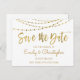 Gold Foil String Lights und handgeschriebenes Skript White Simple and Elegant Save the Date Invitation Card.