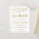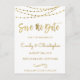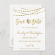 Gold Foil String Lights und handgeschriebenes Skript White Simple and Elegant Save the Date Invitation Card.