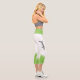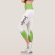 Die Leggings sind in Weiß und Grün gehalten und zeichnen sich durch ein elegantes, weißes Blumendesign auf hellgrünem Hintergrund am Bund und an den Beinen mit weißen Streifen aus. Einfach anpassbar, indem Sie auf beiden Seiten Ihren Namen auf einem kalligraphischen schwarzen Schriftart hinzufügen.