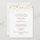 Diese elegante dennoch moderne Hochzeitseinladungsreihe hat einen weißen Hintergrund mit einem Zerstreuen der ImitatgoldGlitterflecke, die vom Spitzen- und Gold-farbigen Text kaskadieren.