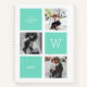 Mit Monogramm Wendelheft mit einer weißen und minzgrünen Collage aus Foto mit Platz für drei eigene Fotos. Fügen Sie Ihren Familiennamen, den Anfangsnamen und das Jahr hinzu!