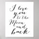 Typografie schwarz Ich Liebe Sie auf den Mond und Backposter auf matt weißem Hintergrund gedruckt. Die Abmessungen des Zeichendrucks (Poster) sind 8 Zoll x 10 Zoll.