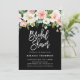 Elegante Aquarellgarten Blume und botanische Äste in trendigen Weiß-, Rosa- und Grüntönen, Brautdusche Einladung. Die Karte verfügt über einen soliden schwarzen Hintergrund und eine elegante weiße Typografie.