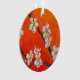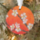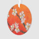 Weißer Blütenzweig im Frühling, Reproduktion des Originalgemäldes von Julia Doria. Acrylmalerei auf Papier. Blühende Obstbäume auf orangefarbenem Hintergrund.