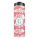 Trendy Korallenrosa und gemusterte Fisch-Thermalwäscher mit Ihrem Monogramm Buchstaben in blau grün.