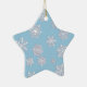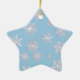 Weiße 3-D-Schneeflocken auf eisblauem Hintergrund Keramik Ornament