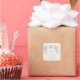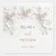 Dieser elegante, dezente Hochzeitsaufkleber im Luxus-Stil zeigt weiße skulpturierte Rosen auf weißem Hintergrund, Namen von Braut und Bräutigam in einer eleganten modernen Schrift und handgeschriebener Schrift.