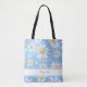 Eine reizende Taschentasche mit weißen Gänseblümchen auf einem blauen Watercolorblickhintergrund. Es gibt einen weißen Streifen mit Imitatspitzereise, in der Sie einen Namen oder andere Personifizierung addieren können.