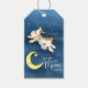 Niedliche whimsical Kuh springen über die Mond Aquarell Art Babydusche, willkommen in der Welt oder Kindergeburtstag Gunst Anhänger. Kinderzimmer Rhyme Thema Kuh-Tag in den Tönen weiß, braun, gelb und dunkelschwarz blau. Derzeit liest Liebe Sie zum Mond auf der Vorderseite und Sie können den Rücken mit Ihren eigenen Dankesworten personalisieren. © Original unique watercolor painting by Sarah Trett for www.mylittleeden.com
