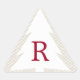 Weiße Bäume auf Beige, Burgund Monogram Weihnachte Dreieckiger Aufkleber
