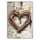 Tischnummer-Karte Weißer Baumbaum Bark und ein rustikales Landherz mit verbogenen Zweigen und Zweigen. Perfekt passend zu Einladungen und RSVP Karten.