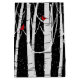 Rote Kardinäle in weißen Birkenbäumen mit Vollmond und Schneeflocken auf schwarzem Hintergrund. Die Hintergrundfarbe kann geändert werden.