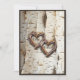 Hübscher Weiße Birkenbaum mit zwei rustikalen Landherzen, die mit gebogenen Zweigen und Zweigen gemacht wurden. Fügen Sie Ihren Namen in die Herzen, und personalisieren Sie Einladungstext, Formulierung.
