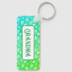 Weiße Blätter auf Grün mit Schlüsselanhänger für Namensplatzierung