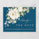 Müssen Sie Ihre Hochzeitsgäste darüber informieren, dass Sie Ihr großes Datum ändern mussten? Bitte benutzen Sie diese elegante Postkarte. Charmantes Design mit weißgestrichenen, cremefarbenen Blume und grünen Blätter auf tiefblauem Hintergrund. Auf der Rückseite weiße Blume Bouquet. Verwenden Sie das Tool Personalisieren, um Ihre Informationen hinzuzufügen. Für passende Artikel besuchen Sie bitte meine Sammlung für verspätete Hochzeitsfeiern.