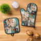 Weiße Blume auf abstraktem Hintergrund II Ofenhandschuh & Topflappen-Set