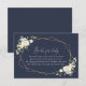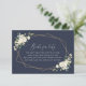 Fügen Sie Ihrer Babydusche mit diesen stilvollen und unvergesslichen Party eine persönliche Touch hinzu! Das Design zeichnet sich durch weiße Aquarellfarben-Blume, Grünpflanzen und goldene Rahmen auf marineblau-blauem Hintergrund aus.