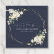 Fügen Sie Ihrer Babydusche mit diesen stilvollen und unvergesslichen Party eine persönliche Touch hinzu! Das Design zeichnet sich durch weiße Aquarellfarben-Blume, Grünpflanzen und goldene Rahmen auf marineblau-blauem Hintergrund aus.