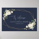 Fügen Sie Ihrem Brautparty eine persönliche Touch mit diesen stilvollen und unvergesslichen Party hinzu! Das Design zeichnet sich durch weiße Aquarellfarben-Blume, Grünpflanzen und goldene Rahmen auf marineblau-blauem Hintergrund aus.