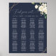 Fügen Sie Ihrer Hochzeitsfeier eine persönliche Touch mit diesen stilvollen und unvergesslichen Party hinzu! Das Design zeichnet sich durch weiße Aquarellfarben-Blume, Grünpflanzen und goldene Rahmen auf marineblau-blauem Hintergrund aus.