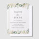 Mit dieser bezaubernden Save the Date Karte laden Sie Freunde und Familie in Stil und Set ein. Das Design zeichnet sich durch weiße Aquarelltöne und Grünpflanzen aus.