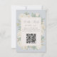 Mit dieser wunderschön gestalteten Response Card, die mit zarten, weißen Aquarellfarben-Blume und subtilen goldenen Akzenten auf sanft hellblauem Hintergrund einen nahtlosen UAWG garantiert, sorgen Sie für einen reibungslosen Ablauf. Die raffinierten Blumenelemente fügen eine Touch von Eleganz und Romantik hinzu, die das Hochzeitsthema perfekt ergänzen. Ein QR-Code ist elegant in das Design integriert, sodass die Gäste mühelos reagieren können und die raffinierte Ästhetik der Karte erhalten bleibt. Auf der Rückseite verleihen zusätzliche weiße Blumenverzierungen dem Gesamtbild ein einheitliches und zeitloses Ambiente. Diese Response Card ist ideal für Paare, die klassische Eleganz mit einer romantischen Touch schätzen. Sie ist eine praktische und schöne Ergänzung zu Ihrer Hochzeitsvorratssaison.