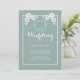 Weiße Blume mit Einladung zur Hochzeit an der Gren