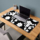 Weiße Blume mit Perlen auf schwarz Schreibtischunterlage