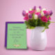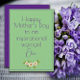 Muttertags Grußkarte. Die Vorderseite ist lila, die Rückseite ist salatgrün. Sie können die Grüße und Wünsche nach Ihren Wünschen anpassen. Das Kartendesign wird durch zarte Aquarellfarben-Blume ergänzt.