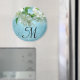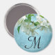 White Blume Deep Blue Sky Floral Country Monogram Initial Kitchen Magnet Personalisiert