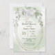 Träumromantische weiße Blume und grüne Blätter auf goldgelben ovalen Rahmen botanische Braudusche Einladung Die Glitzer Details werden simuliert