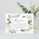 Elegante, weiße, blumengeschmückte Umzäunungskarte mit den Details Ihres Empfangs, gerahmt mit den bemalten, weißen Gärten, dem Atem des Babys, den saftig grünen Farn-Blätter und den lebhaften grünen Blätter. Personalisieren Sie die botanischen Empfang-Karten, indem Sie Zeit, Veranstaltungsname, Adresse und zusätzliche Informationen hinzufügen. Entworfen, um mit unserer Hochzeitskollektion Lush White Blume and Greenery zu koordinieren.