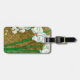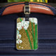 Weiße Blume und grüne Stiele an der braunen Grenze Gepäckanhänger