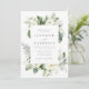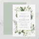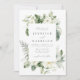 Elegante, botanische Hochzeitseinladung mit Ihren Hochzeitsdetails, gerahmt von bemalten, weißen Gärten-Blume, dem Hauch des Babyatmens, von Salbei-Farn-Blätter und lebhaften grünen Blätter. Diese weiße Blumen-Hochzeitseinladung ist ideal für Hochzeiten im Garten, Frühjahr oder Sommer.