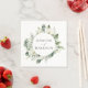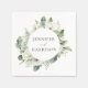 Elegante, blumengeschmückte Hochzeitsnapkins mit ihren Namen, umrahmt von bemalten Blume aus weißer Gärtnerei, Hymnen aus dem Atem des Babys, Dahlien, von Salbei grünen Farn-Blätter und lebhaften grünen Blätter. Ideal für Hochzeitsessen und Hochzeitsfeiern mit Probe! Entworfen, um sich mit unserer Kollektion Lush White Blume and Greenery abzustimmen.