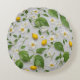 Weiße Blume Zitronen Grüne Blätter Muster auf Weiß Rundes Kissen