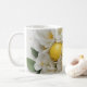 Weiße Blume, Zitronen und grüne Blätter auf Weiß Kaffeetasse