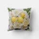 Weiße Blume, Zitronen und grüne Blätter auf Weiß Kissen