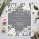 Für einen eleganten und romantischen 25. Geburtstag. Der graue Hintergrund ist mit weißen Blumen, Rose und weißen Spitzen geschmückt. Personalisieren Sie Ihre Namen und Details und fügen Sie diese hinzu.