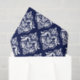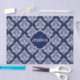 Mit Monogramm, weißes, blumenfeuchtgeflechtetes Muster mit transparentem Hintergrund über königsblauem Hintergrund.