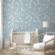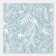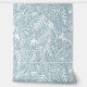 Weiße Blumenfolien auf blauem Design-Tapete.